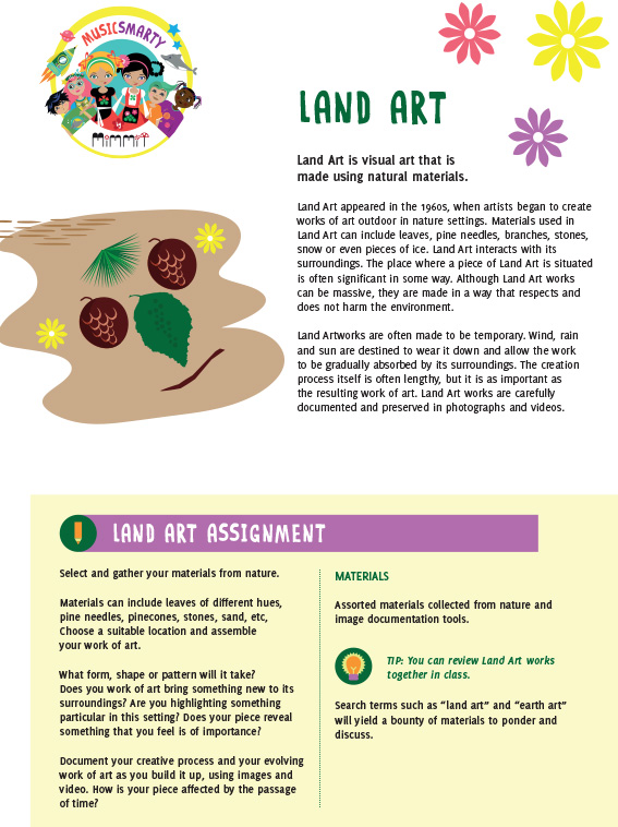 You can make art also outdoors! Go outside, get some fresh air and make your own piece of Land Art. You’ll find instructions here.