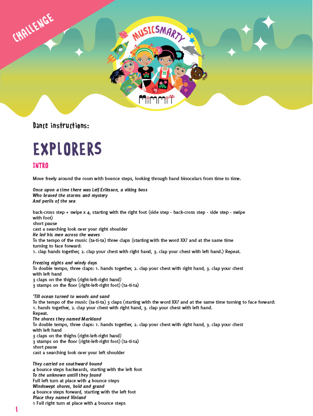 Using the instructions provided, teach the kids the dance. Note that there is both an easier and a more challenging version of the dance.
